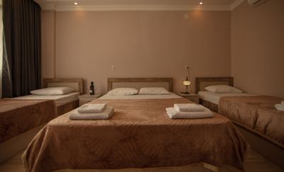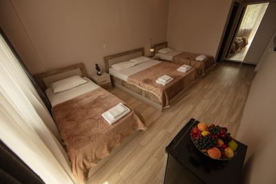 Хороший бюджетный отель в Квариати, чуть на возвышении, с красивым видом и очень доброжелательными хозяевами) Из нюансов - трёхместный номер на фото казался больше, на самом деле он прямо маленький, немного уставший (ржавчина на полочке в ванной, что-то отвалилось и обратно не повесили, так и остались дырки, шторку в душе уже пора заменить) Из плюсов - большой балкон с отличным видом, цена, расположение удачное, хозяева очень милые. По совокупности факторов рекомендую)
